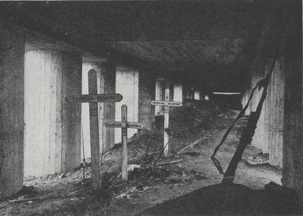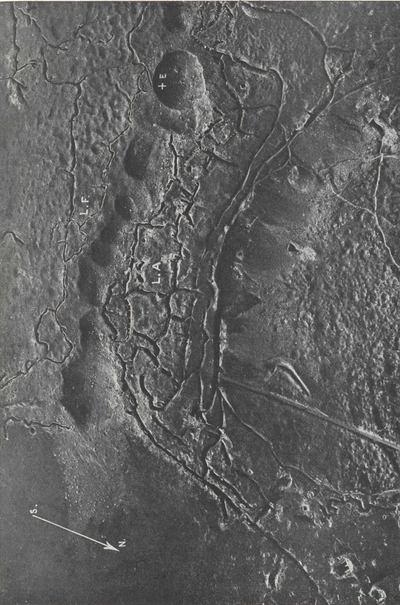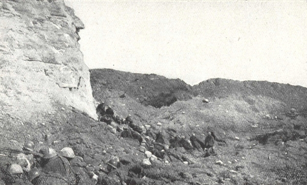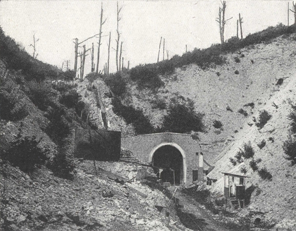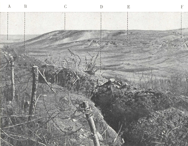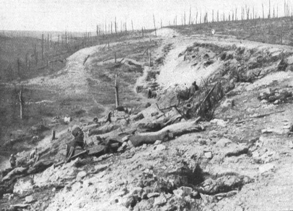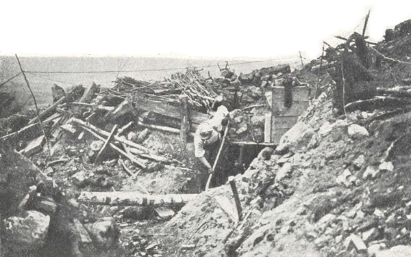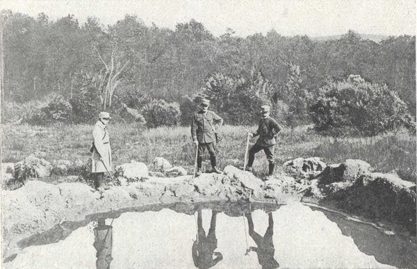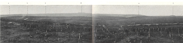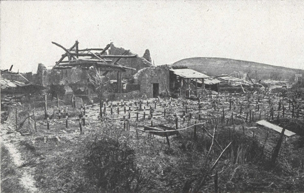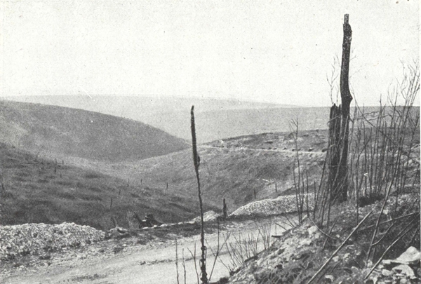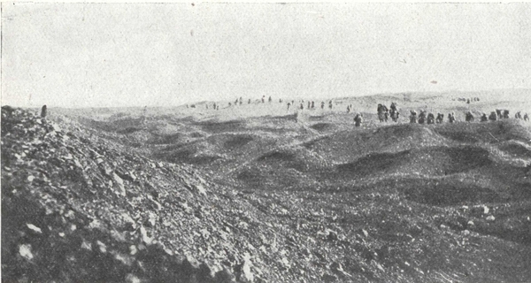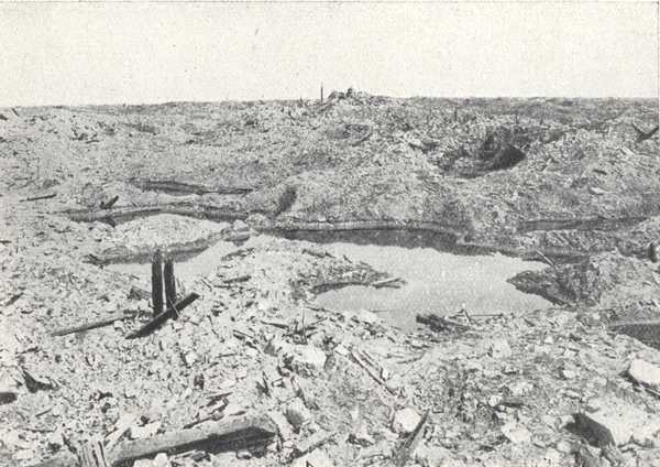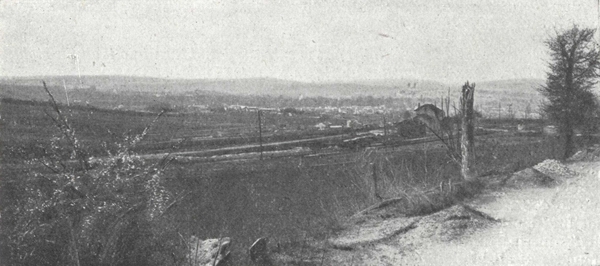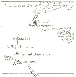 From October 28th 1914 to March 1st 1915, four attacks were launched against Vauquois, the summit of which was reached by the French troops of the 10th Division. The struggle extended around the mine craters until 1916. (See page 144.)
