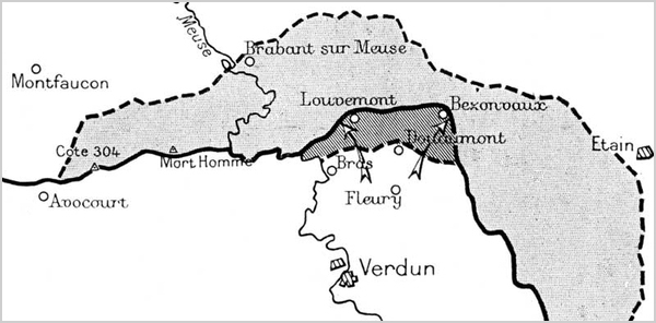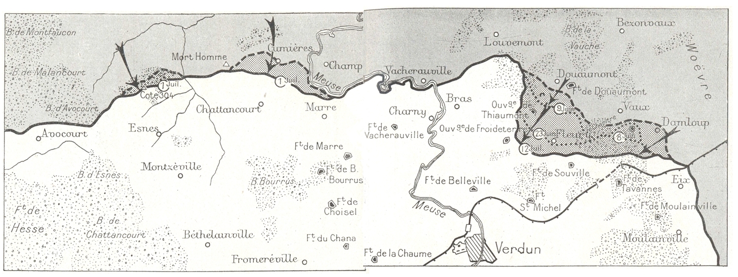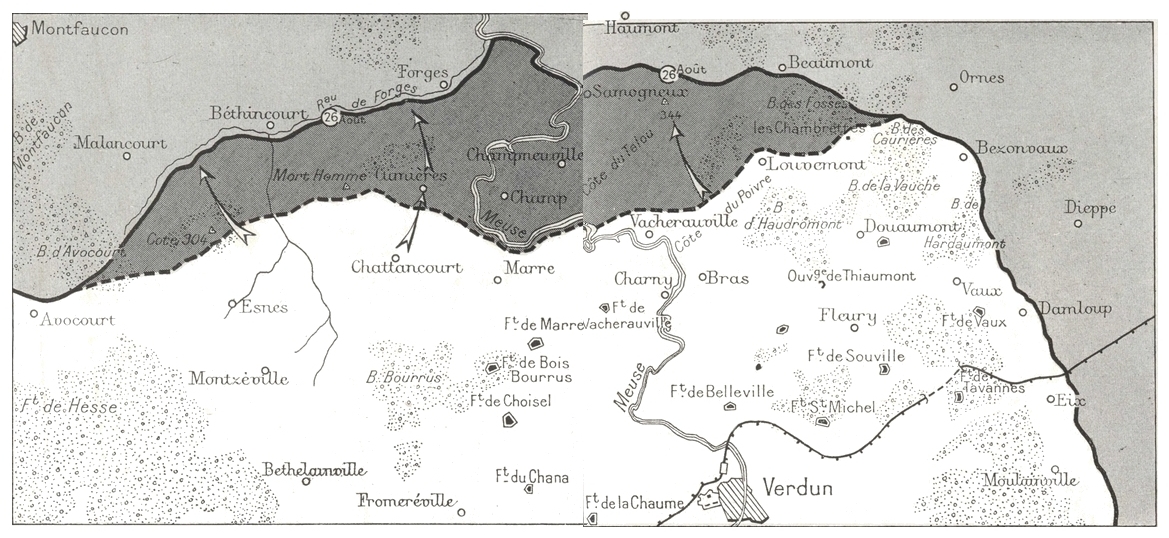 After the battle of the Marne, the Crown Prince established his lines of resistance north of the fortress, on the line Avocourt-Melancourt-Brabant-Ornes.