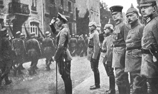 After the French manœuvre at the frontiers was checked and with the threat of a German envelopment in the West, General Joffre steadfastly withdrew from the battle and ordered a general retreat until the moment when the French troops were reunited. As soon as a favourable moment offered, it would be possible to take up a position and then to drive back the enemy.