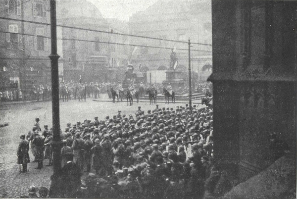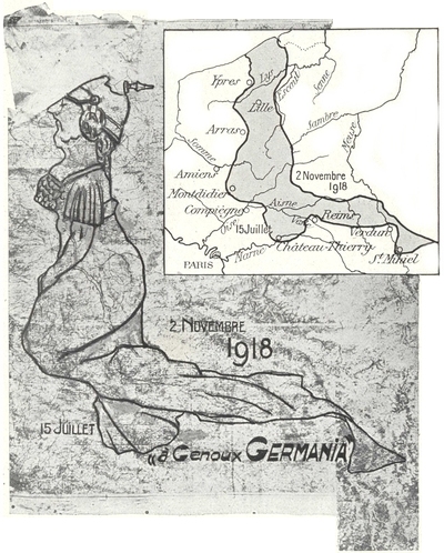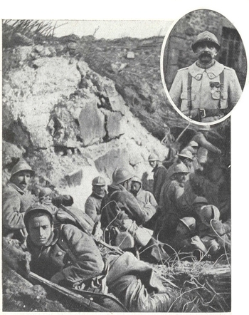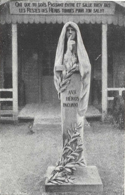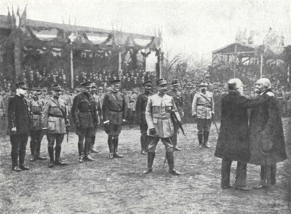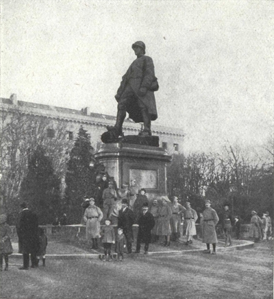 In place of William, a statue "to the victorious poilu" was erected during the night of January 6-7th with the inscription: "We've beaten them". This was done as a pleasant surprise for Marshal Pétain who was coming on the following day to present colours to 16 regiments, and to confer decorations on several officers and men. This statue was made in seven days in a workshop of Metz by the sculptor Bouchard.