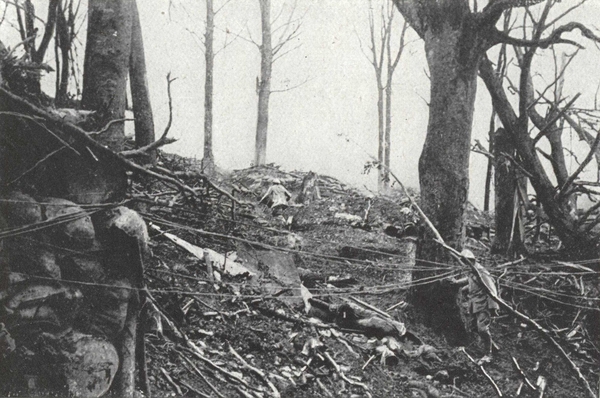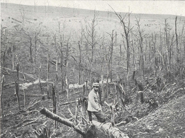 The stationary warfare assumed a special character in the Argonne. Lanes and footpaths formed the only breaks in the impenetrable thickets. There were no gentle slopes, no convenient firing positions for the infantry, no observation posts for the artillery—everything was concealed by the thick foliage.