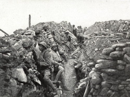 Apart from actual battles, there were hundreds of casualties, killed and wounded, every day. In the attack or defence of a trench, the fighting immediately became a hand-to-hand struggle, with knives and revolvers. (p. 13) Underground there was a continuous digging of saps and mines; it was a contest of speed and skill between the opposing sappers. It was a case of blowing up the enemy first or being blown up by him. Over the wrecked trenches, destroyed by mines, through smoke and under a rain of earth thrown up by the explosions, the soldiers dashed forward to occupy the crater or to fight for it if the enemy had reached it first.