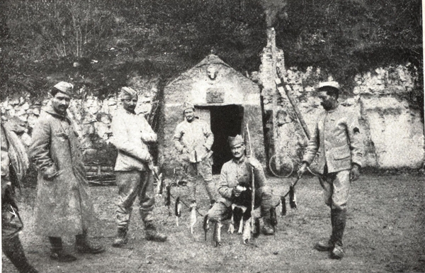 During a period of quiet, a plant for making rings has been installed at the entrance of a dug-out.