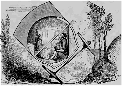 Telle est l'idée qu'a mise à exécution M. Callier, de Gien, qui a exposé une voiture-parachute est ingénieuse; nous ne doutons même pas, sans vouloir cependant en faire l'épreuve par nous-mêmes, que les voyageurs ne sortent de là sains et saufs, même dans le cas où la voiture, tombant dans un précipice, ferait huit ou dix tours sur elle-même; mais l'application nous a paru laisser beaucoup à désirer: la forme de la voiture est disgracieuse, son poids nous a semblé énorme, et c'est probablement l'impression qu'elle a produite sur un de nos spirituels dessinateurs qui dans le dernier numéro, l'a représentée résistant vertueusement aux instances et aux efforts de pas mal de chevaux. Mais, nous le répétons, le principe est bon; le tout est de l'appliquer d'une manière usuelle.