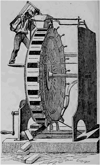 Nous avons examiné avec intérêt une machine à faire la brique, de l'invention de M. Parise, et dont nous donnons aujourd'hui le dessin. C'est une roue marchant par un mécanisme quelconque, et qui porte sur toute sa circonférence des augets. Ces augets reçoivent la terre qu'un ouvrier verse par une espèce de trémie ou d'entonnoir, puis se referment et compriment la terre, dont ils expriment ainsi l'eau, en donnant à la brique la forme qu'elle doit avoir. Ceci se passe pendant le temps que met la roue à faire une demi-révolution; alors l'auget, arrivé au bas, s'ouvre et dépose la brique sur une toile sans lin, qui la porte à l'ouvrier chargé de la ranger. Nous n'avons pu savoir combien la machine fournit de briques par jour; mais sa simplicité et la facilité des manœuvres qu'elle exige nous font penser qu'on doit en obtenir d'excellents résultats.