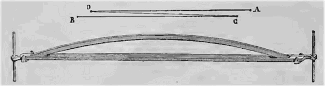 M. Baudrit a exposé une armature en fer dans un nouveau système imaginé par un des plus savants architectes de Paris. Cette armature a pour but de supprimer les colonnes en fonte dans les devantures de boutique et dans les magasins. On sait combien le négociant parisien tient à avoir un bel étalage et à présenter au passant la tentation de devenir acheteur par le bon effet de marchandises arrangées avec goût, d'heureuses oppositions de couleurs, de rapprochements séduisants. Eh bien! un des grands obstacles qu'il a à vaincre, c'est la ligne disgracieusement verticale des colonnes en fonte qui soutiennent le poitrail et tous les étages supérieurs au magasin. C'est donc, un véritable service rendu au commerce et, nous ajouterons, à la sécurité publique, que l'introduction dans les constructions d'une pièce qui supprime du même coup et les colonnes et le poitrail. En cas d'incendie, la poutre calcinée entraîne par sa chute la destruction de l'édifice entier, tandis que l'armature en fer résiste et retient tout ce qui est au-dessus d'elle. M. Baudrit a appliqué aux constructions deux systèmes, l'un qu'il nomme renversement de la poussée, l'autre suppression de la poussée. C'est le premier dont nous offrons le trait aux lecteurs. L'armature se compose de deux tirants AD, CB, et d'un seul arc CD, allant de l'extrémité d'un tirant à l'extrémité de l'autre, les deux points A, B, étant seuls fixés à l'aide d'anses en fer. Tout le poids porté par l'arc CD, et tendant à le faire fléchir, aura pour résultat de solliciter le rapprochement des deux points A, B; mais ce rapprochement ne pourra jamais avoir lieu, car il faudrait ou que la plate-bande placée au-dessus de l'arc fût broyée, ou que la charge entière fût soulevée. Dans l'application, on évite la position diagonale de l'arc par l'ajustement indiqué dans la figure. Ces armatures ont subi des épreuves de puissance tout à fait concluantes. Une, entre autres, qui n'avait pas été sollicitée par le possesseur du brevet, en a démontré la force et la solidité. Une poutre de 30 centimètres de côté et de 5 mètres 50 cent. de longueur, est tombée, par mégarde, du quatrième étage sur une ferme placée au rez-de-chaussée! Cette ferme la renvoya par son élasticité, et la poutre alla percer un plancher nouvellement construit par le malencontreux charpentier. Nous ne doutons pas qu'avant peu d'années la plupart des boutiques de Paris seront munies de cette précieuse armature.