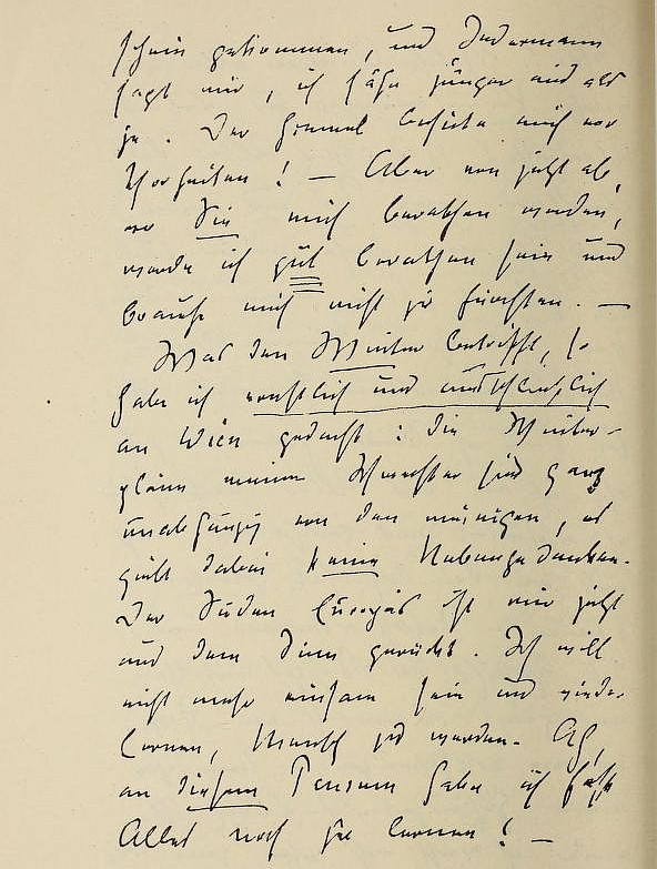 Was den Winter betrifft, so habe ich ernstlich und ausschließlich an Wien gedacht: die Winterpläne meiner Schwester sind ganz unabhängig von den meinigen, es giebt dabei keine Nebengedanken. Der Süden Europa's ist mir jetzt aus dem Sinn gerückt. Ich will nicht mehr einsam sein und wieder lernen, Mensch zu werden. Ah, an diesem Pensum habe ich fast Alles noch zu lernen!—