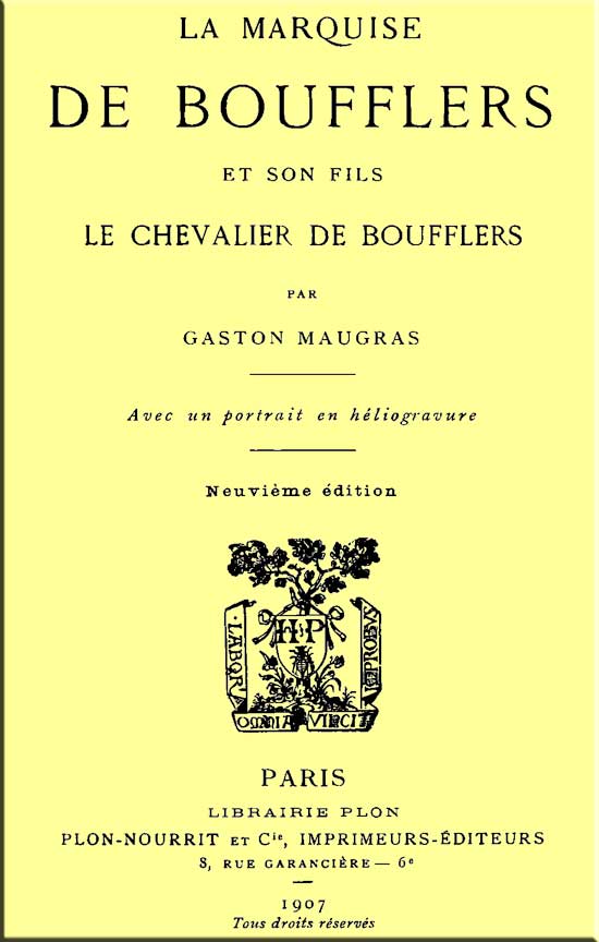 [189] Correspondance de Mme de Sabran et du chevalier de Boufflers. Plon-Nourrit, 1875.