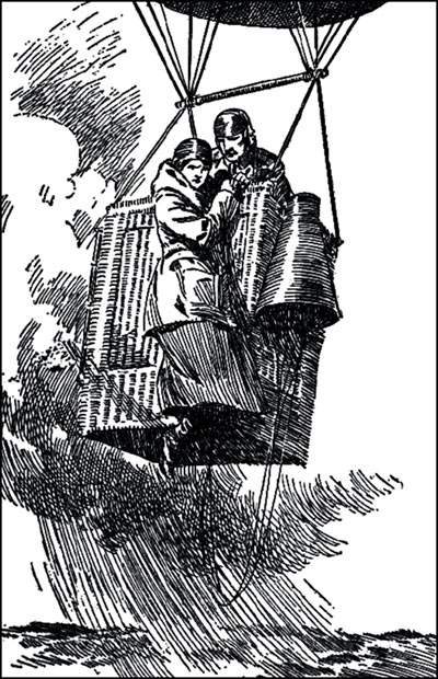 The swaying basket arouses Grace’s apprehension. Hearing miraculously restored. The Overton girl eats her luncheon three thousand feet above the earth. “Haul in, you idiots!” The balloon begins to buck. “We are adrift!” announces the major.