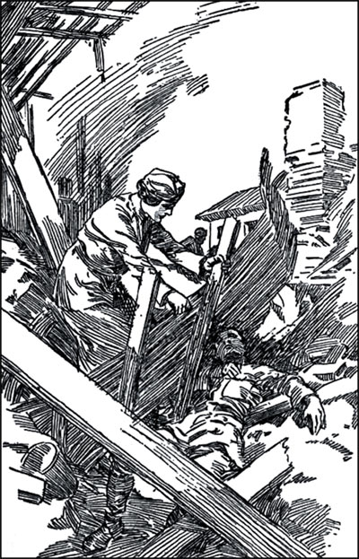 Grace Harlowe looks for Hun treachery. “What I have seen has chilled my very soul.” The supervisor gives her orders. Elfreda sees a danger signal. “For the love of Heaven, stop it!” A mighty crash and a plunge into the river.