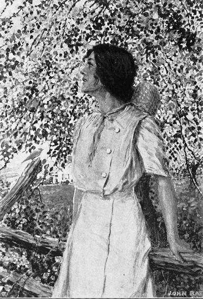 They would surely come soon, she concluded, with a glance at the tall clock in the corner. But this faithful monitor of dead and gone generations of Prestons presently became quite intolerable, so loudly did it proclaim the lagging minutes. There seemed to be vague stirrings, too, in the shadows, like whispers sunk below the rim of sound. The painted eyes of father and grandfather, preternaturally wise in their perpetual mute observance, appeared to be pitying her young ignorance. They drove her forth at length into the chill of the autumn moonlight. Down by the stone gateway she could see the empty road winding away into obscurity on either hand, like a gray ribbon unbound and flung carelessly across the valley. A faint wind shook gusts of fragrance from the cone-laden pines, and away off among the orchards a little brown owl gurgled a mocking defiance to the moon.