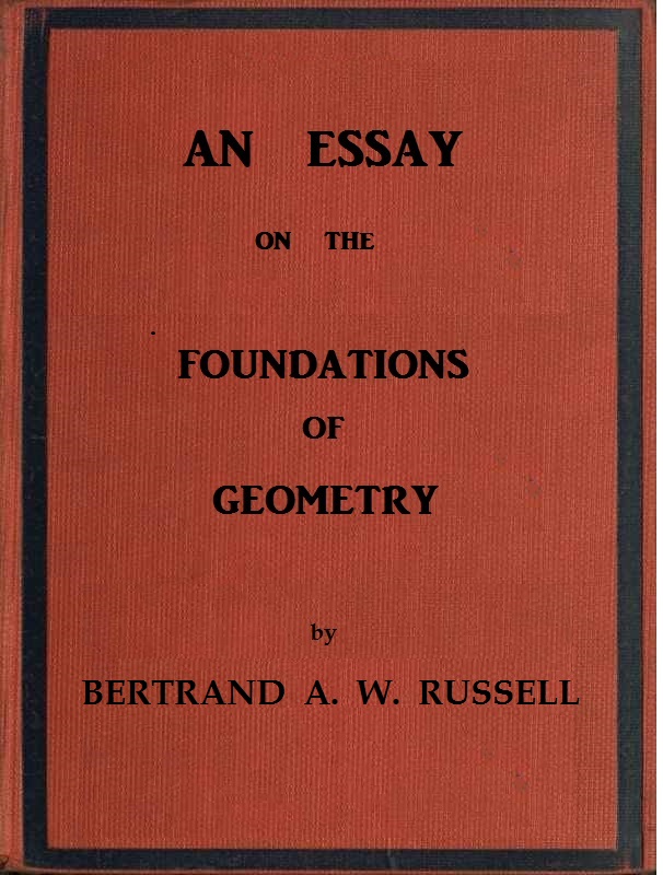 The Project Gutenberg EBook of An essay on the foundations of geometry, by Bertrand Russell This eBook is for the use of anyone anywhere in the United States and most other parts of the world at no cost and with almost no restrictions whatsoever. You may copy it, give it away or re-use it under the terms of the Project Gutenberg License included with this eBook or online at www.gutenberg.org. If you are not located in the United States, you'll have to check the laws of the country where you are located before using this ebook. Title: An essay on the foundations of geometry Author: Bertrand Russell Release Date: May 17, 2016 [EBook #52091] Language: English Character set encoding: UTF-8 *** START OF THIS PROJECT GUTENBERG EBOOK ESSAY ON FOUNDATIONS OF GEOMETRY *** Produced by Adrian Mastronardi, John Campbell and the Online Distributed Proofreading Team at http://www.pgdp.net (This file was produced from images generously made available by The Internet Archive)