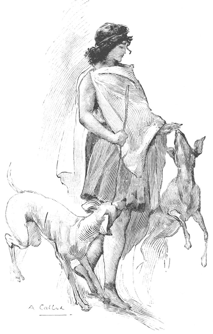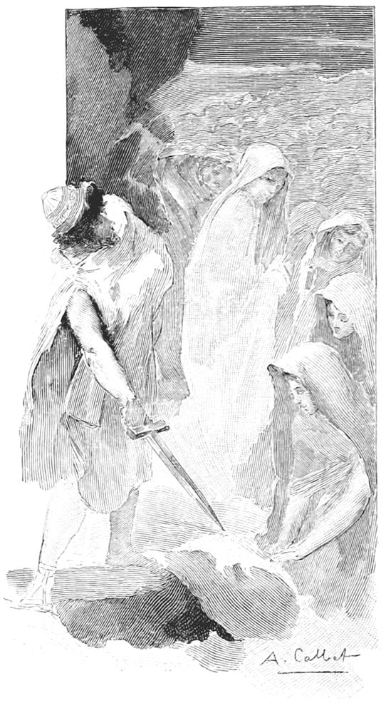 Quand parut l'Aurore aux doigts de rose, Télémaque s'élança de sa couche, se vêtit et suspendit à son épaule un glaive aigu. Puis il donna l'ordre aux hérauts d'assembler les Grecs chevelus. Il se rendit alors à l'assemblée. Ses deux chiens aux pieds rapides suivaient ses pas. 20 En le voyant s'avancer, le peuple fut saisi d'admiration, car une grâce divine était sur sa personne. Il s'assit sur le siège royal et les vieillards l'entourèrent respectueusement. Un héros courbé par les hivers, Egyptios, parla le premier; il avait quatre fils: le belliqueux Antiphus qui suivit Ulysse à Troie riche en coursiers et qui trouva la mort funeste dans l'antre du Cyclope cruel; Eurynomus, prétendant de Pénélope et deux autres qui cultivaient les champs paternels. Le vieillard pleurant son fils Antiphus dit:
