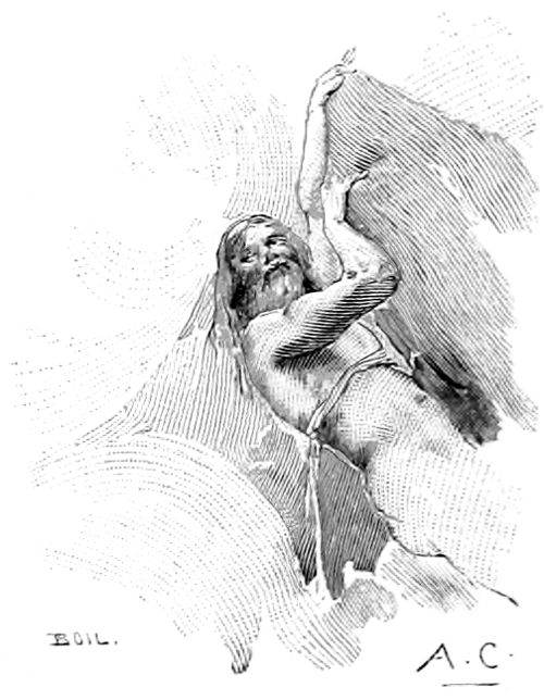 Il dit et retira sa main. Dans le palais les prétendants préparaient leur festin; tous riaient et tenaient des propos injurieux, l'un d'eux parlait ainsi: