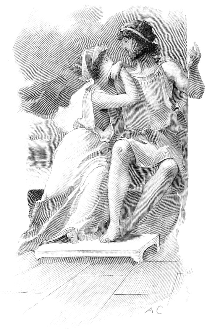 —Cette maison était jadis opulente et magnifique, alors que le héros était au milieu des siens; je ne m'affligerais point autant s'il avait péri sous les murs de Troie; les Grecs lui eussent alors élevé un tombeau et j'aurais hérité de sa gloire. Mais il a disparu, ne me laissant que douleurs et gémissements à la pensée de ses malheurs et des miens. Aujourd'hui les princes qui règnent sur Dalichion, sur Samé, sur Zacynthe verdissante, et ceux qui commandent dans la pierreuse Ithaque, tous recherchent ma mère vénérée et gaspillent mon bien. Pénélope ne peut se résigner à un hymen odieux et ma vie même est menacée.