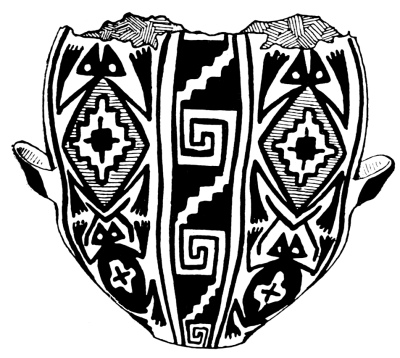 En Andalgalá los vasos más hermosos ostentan figuras draconianas. Tinajas del tipo Santa María, de las que tantos ejemplos dá el doctor Quiroga, no se han encontrado al Sur del Atajo, con dos excepciones halladas en Choya, una aldehuela dos leguas al N. O. del Fuerte, pero aún éstas carecen de las fajas negras de los costados que son el distintivo de las de Calchaquí. Al hacer esta excepción hay que acordarse que á Choya, ó sea Ingamana, fué expatriada una de las tribus del valle de Calchaquí, en el siglo XVII, y allí se han conservado. Aquí, empero, nos sale al encuentro una nueva dificultad: existen ruinas de pueblos de indios en las faldas, mientras que los Ingamanas fueron colocados en el llano.