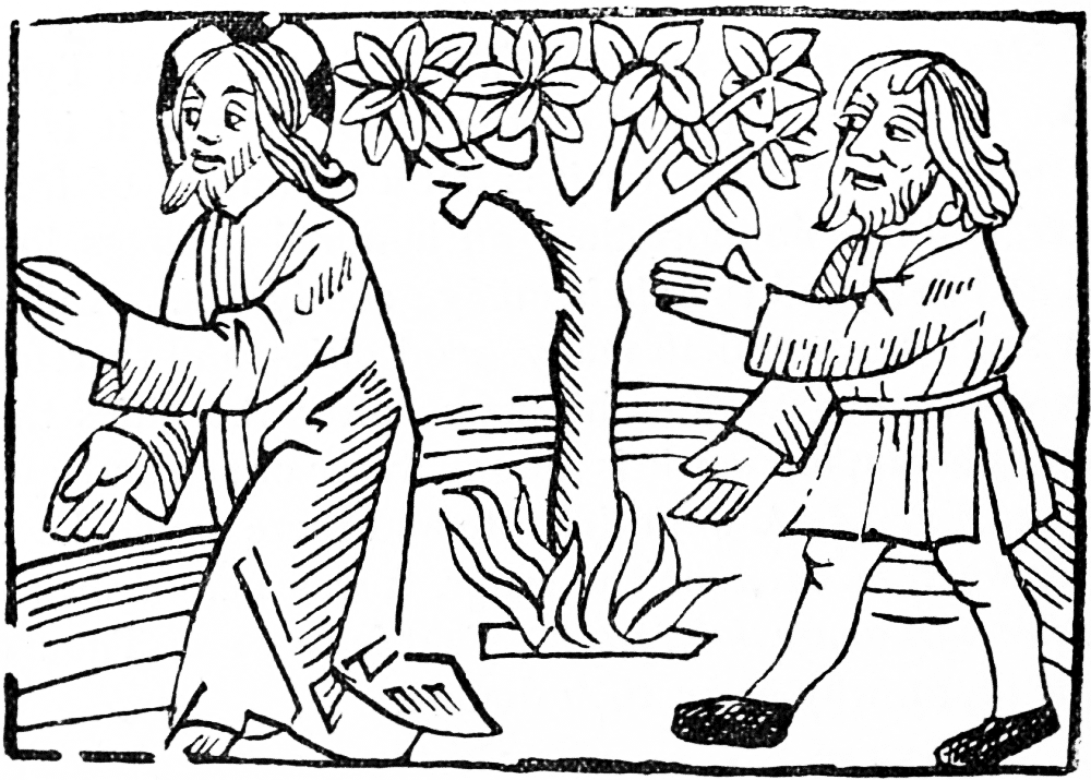For the piece that went ryght up from the earth unto the head was of Cipres, and the piece that went overthwart, to the which his handes were nayled, was of Palme, and the stock that stood within the earth in the which they had made a morteys, was of Cedre, and the table aboue his head was a foote and a half long, on which ye tytle was written, yt was of Olyve. Ye Jewes [pg 10] made this crosse of these foure maner of trees for they thought yt our Lord shold have hanged as long as ye crosse might last, therefore they made the foote of Cedre, for Ceder may not in the erth ne25 in water rot; they thought that the body of Christ shold have stonken, they made the piece yt went from the yearth upwarde of Cipres so that the smell of his body shold greve no man that came by, and that overthwart was made of Palme in signification of Victory. And the table of the tytle was made of Olive, for it betokeneth peace, as the story of Noe witnesseth, when ye dove brought ye braunch of Olive that betokened peace made between God and man. And you also shal understande, that the Christen men that dwell over the sea, say that the pece of the Crosse that we call Cipres was of the tree that Adam eate the appell of, and so finde they written, and they say also that their scripture saith, that when Adam was sicke he sayd to his son Seth that he shold go to Paradise and pray that the Aungel that kepeth Paradise, yt he wold send him oyle of the tree of mercy for to anoynte him that he might have health, & Seth went, but the Aungel would not let him com in at the gate, but said unto him that he might not have ye oyle of mercy, but he took him three carnels26 of the same tree that his father eate the appell of, and bad him as sone as his father was dead, that he should put these carnels under his tongue and bury him, and he did so, and of these three carnels sprang a tree, as the Angel sayd and when the tree bare fruite, then shold Adam be made whole. And when Seth came againe and founde his father dead, he did with the carnels as the Aungell commaunded him, of the which came three trees, whereof a crosse was [pg 11] made that bare good fruite, that is to say, our saviour Jesu Christ, through whom Adam and all that came of him should be saved and delivered from everlasting death, but27 if it be their owne defaute.28 This holy crosse had the Jewes hid under the earth in ye rock of the mount of Calvery, & it laye there two hundreth yeares and more, as they say, unto the tyme that Saint Elene found it, the which Saint Elene was daughter of Coel King of Englande, that then was called Britaine, and after maried to Constantius, fyrst Consul and after Emperour of Rome, who had by hir issue Constantine the great, born in England and afterward Emperour of Rome, which Constantine turned the name of Bezansium into Constantinople, he reedified that citie, and made it monarcall seate of all Europa and Asia Minor. Also ye shall understande that the crosse of our Lord was in length viii cubites and that the piece that went overthwart was three cubites29 and a halfe.