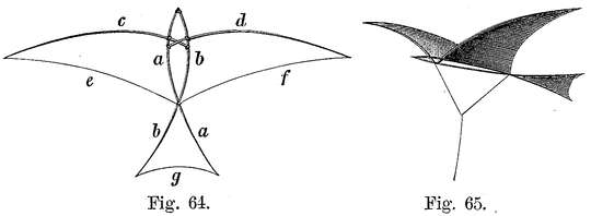 27. Wenn nur die Flügelspitzen auf und nieder bewegt werden, darf dieses nicht mit Hülfe eines Gelenkes geschehen, weil der Flügel sonst einen schädlichen Knick erhielte, vielmehr muß der Ausschlag der Spitzen mit allmählichem Übergang sich bilden.