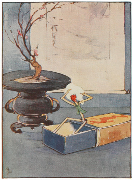 Once on a time, I was in Japan in a city called Takoshima. It rained buckets full. I was thoroughly disgusted, and not being able to walk about the streets, decorated with lanterns and weathercocks, and through the gardens full of flowers, I had to stay shut up in a [14] little room sitting on the floor, for in Japan they don’t use chairs.
