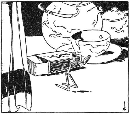 The little match naturally greeted my advances with dignified silence. When I was young and talked to my toys, I made up their answers too, and so it was [16] possible to hold long and animated discussions. But in these days my imagination is worn out. After a few minutes, my little man looked to me like nothing but a match, and I thought I had better use him in the way I was accustomed to. I put a cigarette in my mouth and holding out my hand I said to him: