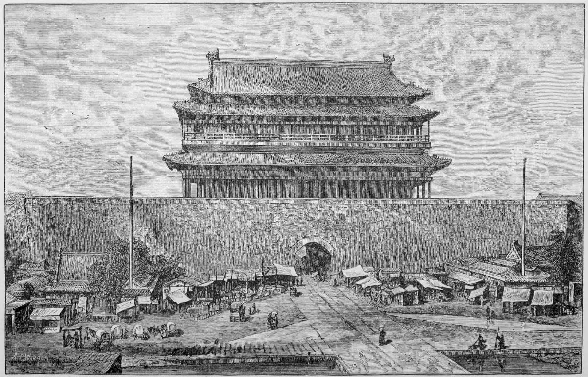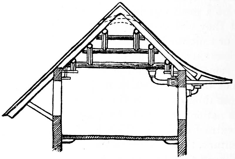 [348] It is said that when Ghengis in his invasion of China took a city, his soldiers immediately set about pulling down the four walls of the houses, leaving the overhanging roofs supported by the wooden columns—by which process they converted them into excellent tents for themselves and their horses.—Encyclopædia Britannica: Art. China.