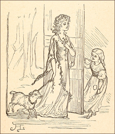 “Puss stood bewildered. Were her night’s adventures a dream? Had she ever studied geography, she might have guessed that chasing morning round the world is a sure way to lose your reckoning. As it was, she could only venture on a plaintive, inquiring ‘Mew?’ Hunger was more engrossing than curiosity. She devoured breakfast, dinner, supper, all at once. The Stepmother had more reason than ever when she grumbled at being ‘eaten out of house and home by a beast.’ But Gretchen’s tears the day221 before had so moved her Father, that he took courage to declare that Puss must be restored to her former privileges. Warm corner, dainty mess, and the protecting arms of her little mistress became hers again, and are hers to this day.