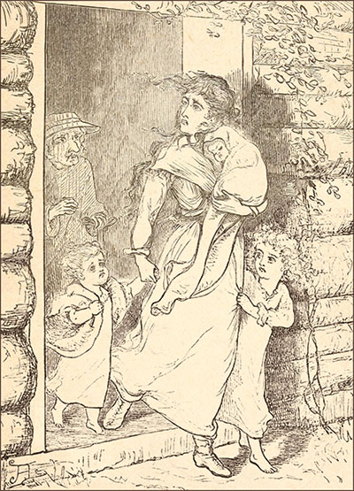 IT was with heavy hearts that Max and Thekla prepared on Christmas Eve to fulfil their promise to the kind Month. Only six days lay between them and the dreaded separation; for on the New Year the Ranger was to come, and it was hard to be hopeful and patient while such sorrow drew near. There was no laughter, no frolic, as they dragged in the great fir-bough, and set it up against the door where December had directed. When it was placed, they pulled their stools to the fire and remained for a while quite silent. Both were thinking of the kind old hands which last year had hung nuts and apples on the tree, and helped to light the Christmas candles. There were no tapers now, no filberts, or green and rosy fruits,—only225 the fir-bough with its damp, fresh smell, and themselves sitting sadly beside the hearth.