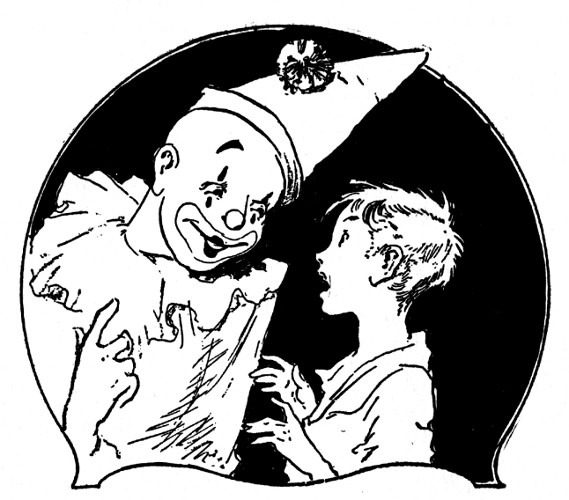 "Ladies and gentlemen!" shouted the clown, waving his arms to attract attention. "Ladies and gentlemen, I am about to perform one of the most astonishing and amazing feats ever executed—a trick that has astounded the crowned heads of Europe, Asia and Africa. Ladies and gentlemen—"