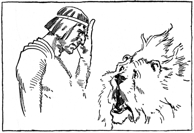 "Panny!" burst out Mustafa, without waiting to read any more, "Panny, that is the lion I want, the Cowardly Lion of Oz!"