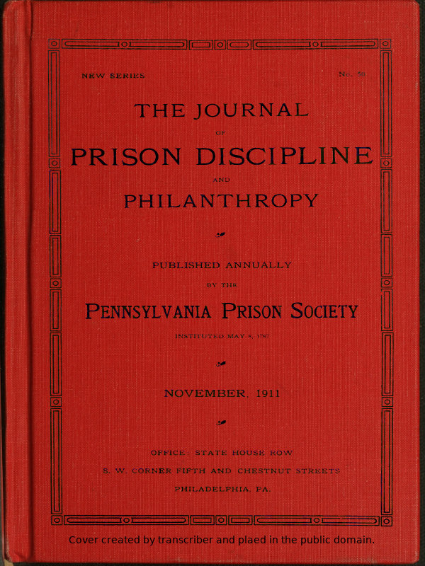 All correspondence with reference to the work of the Society, or to the Journal of Prison Discipline and Philanthropy, should be addressed to The Pennsylvania Prison Society, 500 Chestnut St., Philadelphia, Pa.