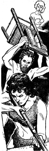 The heavy chair was in his hands and high above his head, he had brought it down on her before the rage of his hate had allowed him to think of what he was doing. The chair splintered but there was still a good half of it in his hands when he spun on the Horse woman. She stepped back, her eyes wide in disbelief. As her companion went down, the side of her face and her scalp welling blood, the Horse at first brought up her rifle and then, in despair, tried to reverse it to use its butt as a club.