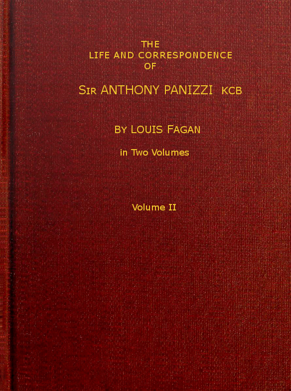The Project Gutenberg EBook of The life and correspondence of Sir Anthony Panizzi, Volume 2 (of 2), by Louis Fagan This eBook is for the use of anyone anywhere in the United States and most other parts of the world at no cost and with almost no restrictions whatsoever. You may copy it, give it away or re-use it under the terms of the Project Gutenberg License included with this eBook or online at www.gutenberg.org. If you are not located in the United States, you'll have to check the laws of the country where you are located before using this ebook. Title: The life and correspondence of Sir Anthony Panizzi, Volume 2 (of 2) Author: Louis Fagan Release Date: May 19, 2019 [EBook #59552] Language: English Character set encoding: UTF-8 *** START OF THIS PROJECT GUTENBERG EBOOK LIFE, CORRESPONDENCE--ANTHONY PANIZZI, VOL 2 *** Produced by KD Weeks, MWS, Adrian Mastronardi and the Online Distributed Proofreading Team at http://www.pgdp.net (This file was produced from images generously made available by The Internet Archive/Canadian Libraries)