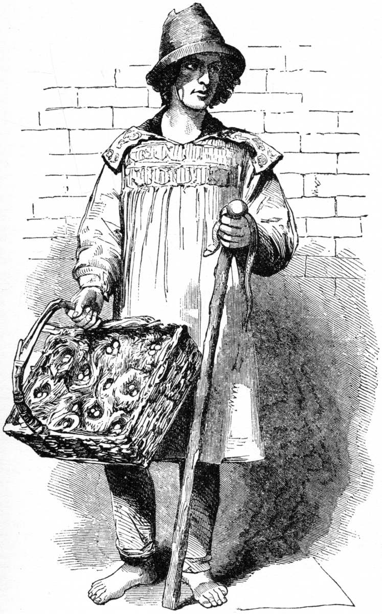 However unsatisfactory it may be to the aristocratic pride of the wealthy commercial classes, it cannot be denied that a very important element of the trade of this vast capital—this marvellous centre of the commerce of the world—I cite the stereotype phrases of civic eloquence, for they are at least truths—it is still undeniable, I say, that a large proportion of the commerce of the capital of Great Britain is in the hands of the Street-Folk. This simple enunciation might appear a mere platitude were it not that the street-sellers are a proscribed class. They are driven from stations to which long possession might have been thought to give them a quasi legal right; driven from them at the capricious desire of the shopkeepers, some of whom have had bitter reason, by the diminution of their own business, to repent their interference. They are bandied about at the will of a police-officer. They must “move on” and not obstruct a thoroughfare which may be crammed and blocked with the carriages of the wealthy until to cross the road on foot is a danger. They are, in fine, a body numbering thousands, who are allowed to live in the prosecution of the most ancient of all trades, sale or barter in the open air, by sufferance alone. They are classed as unauthorized or illegal and intrusive traders, though they “turn over” millions in a year.
