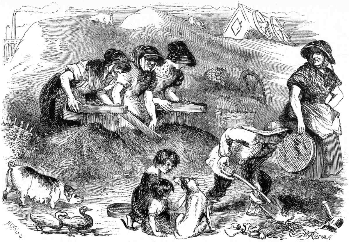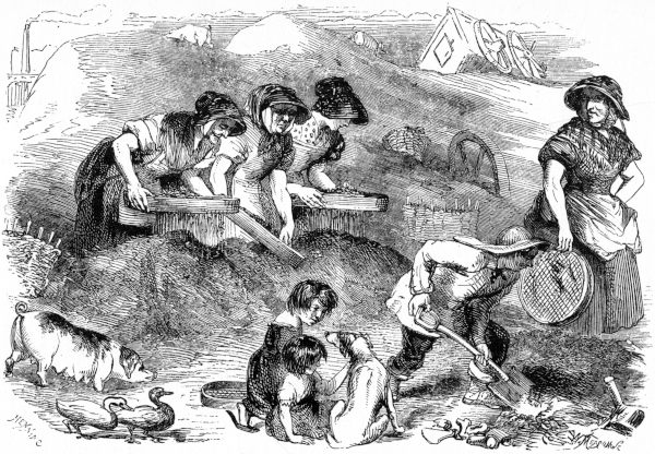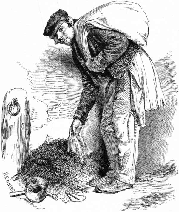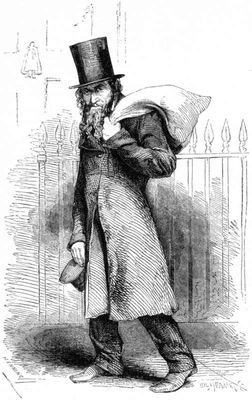 In London, where many, in order to live, struggle to extract a meal from the possession of an article which seems utterly worthless, nothing must be wasted. Many a thing which in a country town is kicked by the penniless out of their path even, or examined and left as meet only for the scavenger’s cart, will in London be snatched up as a prize; it is money’s worth. A crushed and torn bonnet, for instance, or, better still, an old hat, napless, shapeless, crownless, and brimless, will be picked up in the street, and carefully placed in a bag with similar things by one class of street-folk—the Street-Finders. And to tempt the well-to-do to sell their second-hand goods, the street-trader offers the barter of shapely china or shining glass vessels; or blooming fuchsias or fragrant geraniums for “the rubbish,” or else, in the spirit of the hero of the fairy tale, he exchanges, “new lamps for old.”
