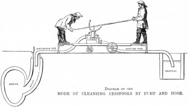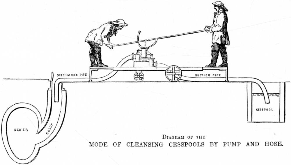 [72] In one of their Reports the Board of Health has spoken of the yearly cleansing of the cesspools; but a cesspool, I am assured, is rarely emptied by manual labour, unless it be full, for as the process is generally regarded as a nuisance, it is resorted to as seldom as possible. It may, perhaps, be different with the cesspool-emptying by the hydraulic process, which is not a nuisance.