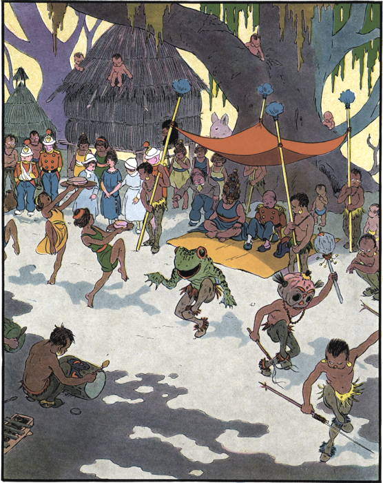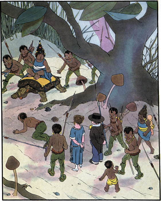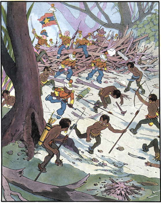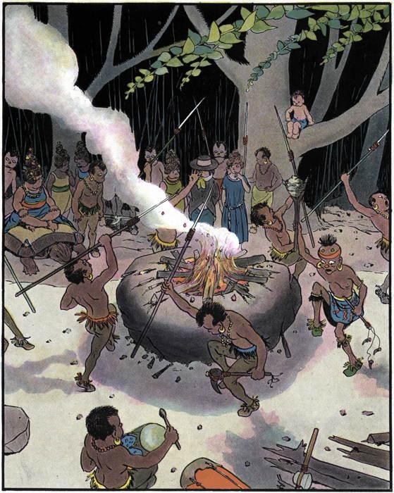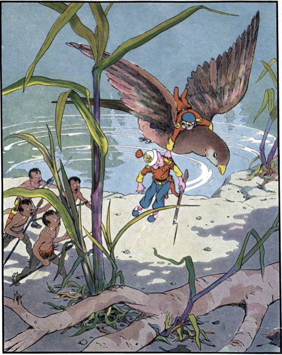 “These wild men are very cruel,” a friendly bird told the Teenie Weenies. “They are called Saboes, or frog eaters, and they would just as soon destroy a person as look at him.”