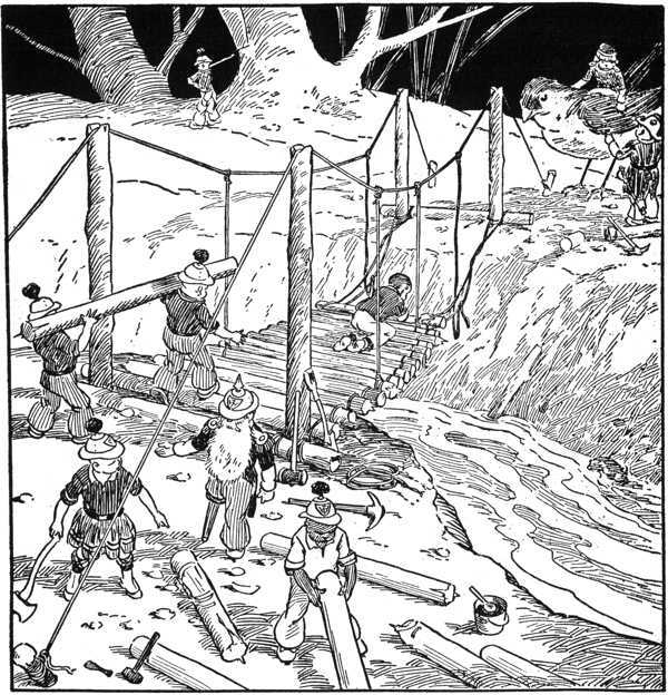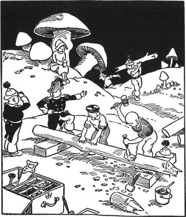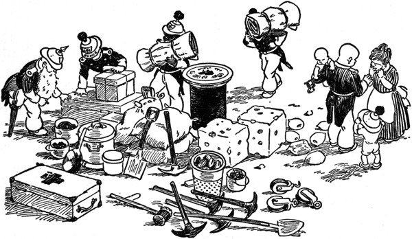 The little people started at once to prepare for the trip into the forest, for it was there that the wild men lived. It takes a great deal of work to outfit an army and the little men were soon buzzing about as busy as bees.