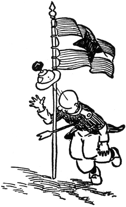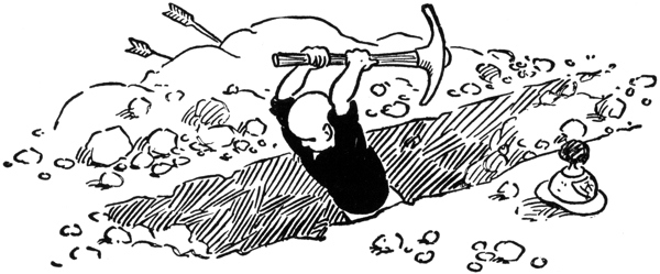 The army had a hard time that afternoon, for the road it traveled was very rough. The little soldiers had to stop every now and then to chop weeds and dandelions from the road so the wagons and cannon could pass. Late in the afternoon the Turk told the General he had sighted an excellent place for a camp, and all the tired little chaps were made very happy when the order was given to make camp for the night.