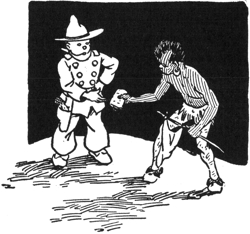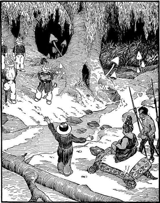 “I believe we’ll have to,” answered the General. “I hate to use the army, but I don’t see what else we can do. These wild men are very savage and I have been told that there are many of them. If we go after the Lady of Fashion and the Poet, we are going on a hard and dangerous mission. We will have many long miles to march and there—there may be fighting. Now, men, I will put it to a vote. All those in favor of sending the army after the wild men in order to free our friends will say ‘yes.’”