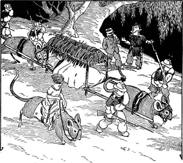 Several mice were hired to pull the wagons and the cannons and also for the officers to ride.