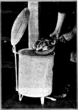 In rat proofing a city building it is well first to look to the exterior. If the locality is heavily infested with rats, some are almost certain sooner or later to find their way into the building however well protected against them it may be. Garbage and trash usually comprise the bulk of the rats' food supply. A metal, water-tight garbage can, large enough to contain all garbage accumulations between collections and having a close-fitting lid (fig 1), is of prime importance and should be required in all cases by city law.