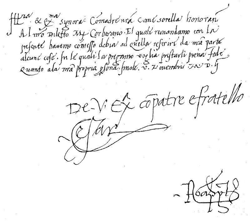 240. Perchè la Mogliera del Duca di Candia, che fu morto dal Duca Valentino, ha procurato questo acto de tencione et vendicta, et che Lei è parente del Re di Spagna. — Lettera di Giovanni Alberto della Pigna a Ercole. Venezia, 18 giugno 1504.