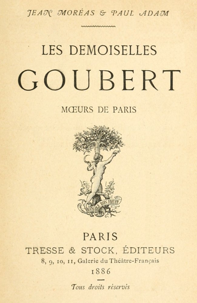 Sur les murs du cabaret à filles. — En les tentures vertes de haute lice s'embranchent des arbres touffus ; les plats bleus réfléchissent la lumière en orbes ; les tambourins rutilent, illustrés par les peintures écolières d'habitués ; les naïades en plâtre nu sourient sur les murs du cabaret à filles. Et des hommes de guerre à la mode d'antan chevauchent emmi les vitraux entre des colonnes à devises. Du lustre en fer le gaz diffus fuit, et ses lueurs chaudes plongent dans les mirances des tables cirées. La fumée des cigares stagne.