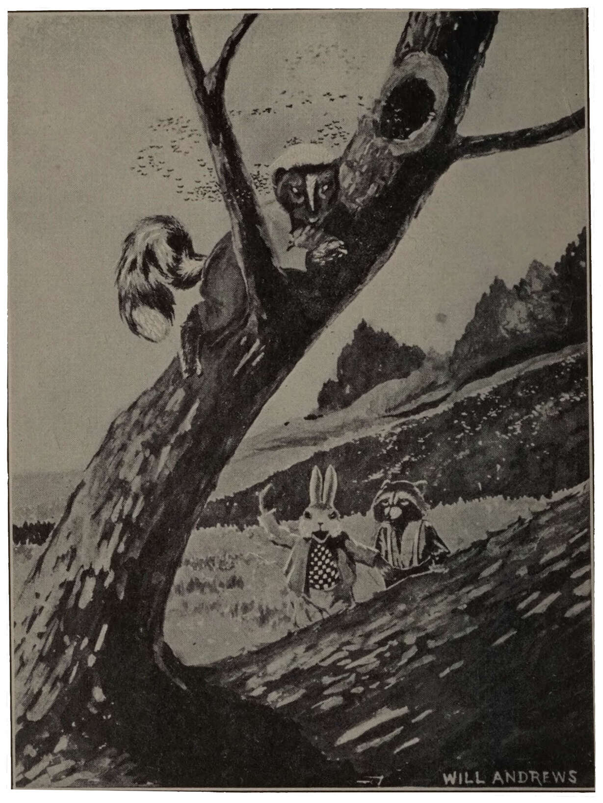 Up went Stripes Skunk, balancing on the wide branch as nicely as you please, and he walked right into the middle of them. And then you should have heard them. They were fairly shrieking their sting song: