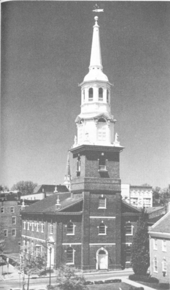 The Moravian Church in Lancaster has an interesting history. Count Zinzendorf preached in the Court House in Center Square, Lancaster, in 1742, when he was asked by some of his hearers to send a regular preacher to serve them. When Bishop Spangenberg preached in the Court House and advocated a merger of the church denominations, he was pelted with stones. The result was that the Moravians of Lancaster erected a stone church of their own on the corner of Orange and Market streets. It is recorded that the brethren gathered from Warwick to Lancaster to haul stone for the building, fifteen men and eight wagons in two days bringing in 94 large loads of the finest stone.