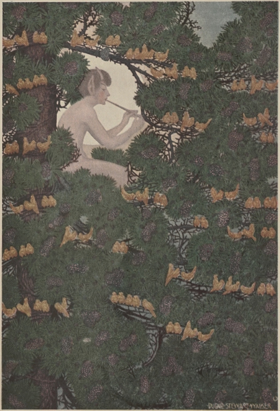 For some time they rested under the shade of the trees, regaling themselves with the freshly-picked fruit and drinking from springs that bubbled and sparkled from the ground like fountains. Then they separated, 360each seeking a still more enchanting spot.