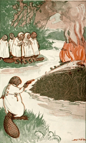 Not that he would have minded that much, for, like all beavers, he loved being in the water just as much as being on land. In fact, beavers, when they wear any clothes at all, as they have to, in stories of course, wear a kind that water cannot hurt—sort of rubber garments, you know.