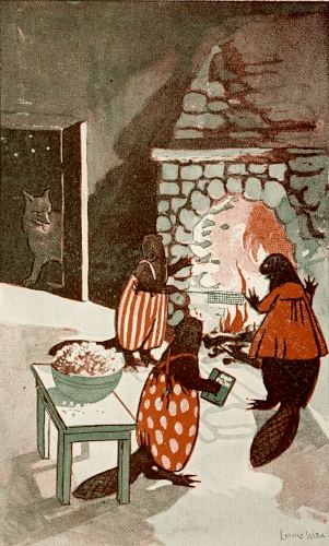 So Mrs. Flat-tail, the beaver lady, put up a nice lunch for each of her children, wrapping birch bark sandwiches and hickory nut cake in clean leaves for them to take to school. Off they started, as three happy little beavers as you would meet if you walked a mile, or maybe a mile and a half, for all I know.