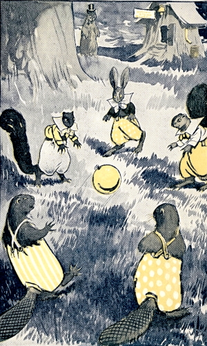 So on the beaver children went to the hollow-stump school, and along the way they met more of their friends, all of whom thought it was just the finest idea in the world to carry a lunch, and they all said—from Sammie and Susie Littletail, the rabbits, down to Jollie and Jillie Longtail, the mousie boy and girl—they all said that, the next day, they were going to do as Toodle and Noodle and Crackie had done, and bring something to eat for the noon recess.