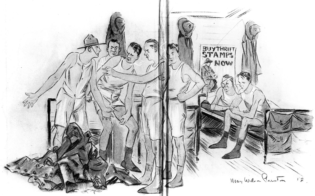 8The barracks hummed day and night. By day boxes were packed, containing the military equipment of horses and men in wartime. By night tired noncoms pored over pay rolls and lists, and wrote, between naps on the table, such thrilling literature as this: